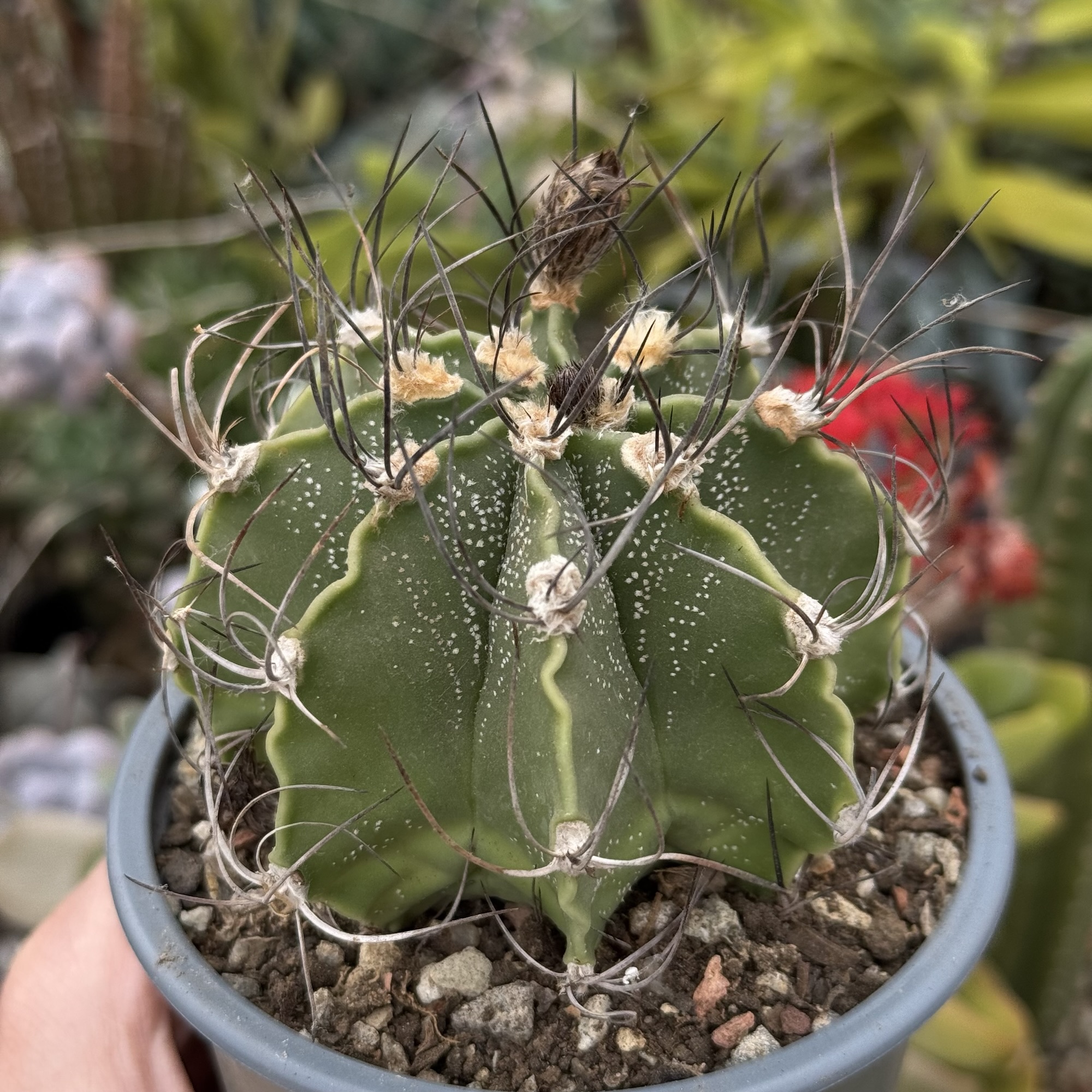 Hibrizii de Astrophytum capricorne cu asterias, sunt de multe feluri și au ceva deosebit pe fiecare exemplar. Detaliile mici fac diferența și chiar dacă deja ai Astro Capricorne, să știi că sunt diferențe suficient de mari între plante, mai ales unicitatea prin combinațiile de hibridizare.