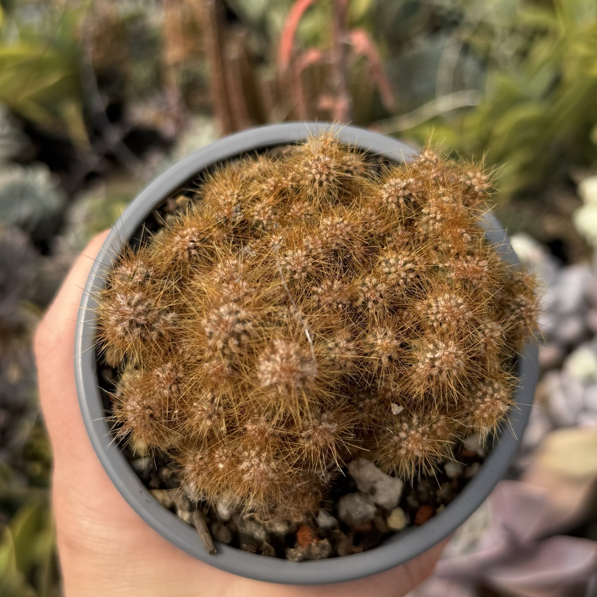 Este un cactus diferit, cu dezvoltare monstruoasă, dar tulpina rămâne sub aspectul unui copac. Nu înflorește curând, ajunge târziu la maturitate, însă dacă ești o persoană care vrea plante neobișnuite, este pentru tine. Nu înțeapă, spinii fiind elastici. Culoarea este delicată și dă un aspect frumos plantei.
