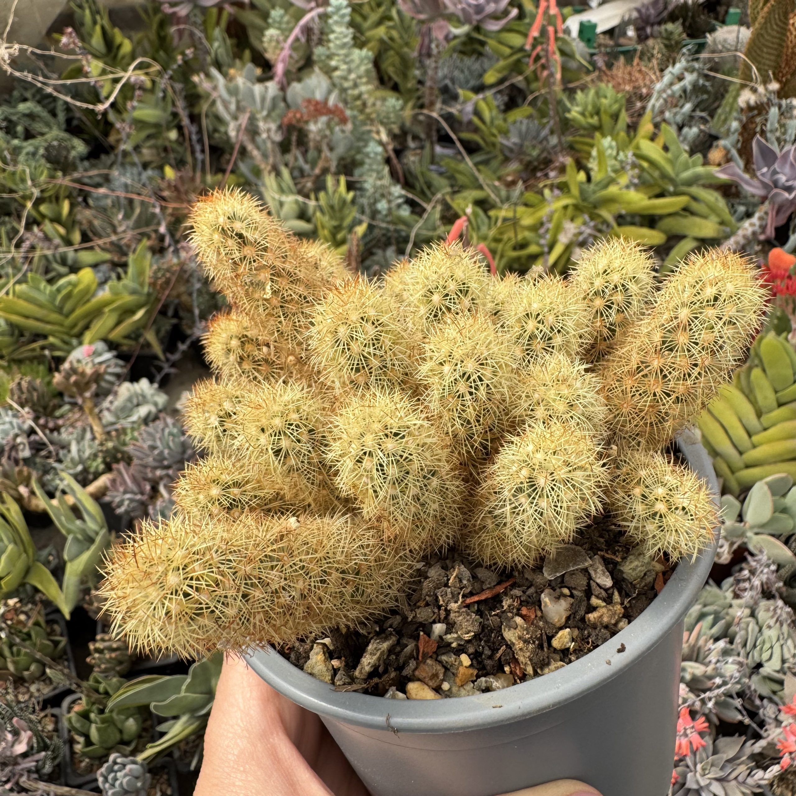 Mammillaria elongata este una dintre cele mai populare și ușor de recunoscut specii de cactus, apreciată pentru creșterea sa în grupuri dense și aspectul decorativ.